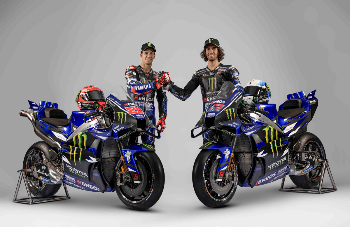 สำหรับ มอนสเตอร์ อีเนอร์จี้ ยามาฮ่า โมโตจีพี ในฐานะทีมโรงงานของยามาฮ่า จะยังคงใช้งานนักบิดสองคนเดิม ได้แก่ ฟาบิโอ กวาร์ตาราโร แชมป์โลกพรีเมียร์คลาส 1 สมัย หมายเลข 20 และทีมเมทชาวสเปน อเล็กซ์ รินส์ หมายเลข 42
