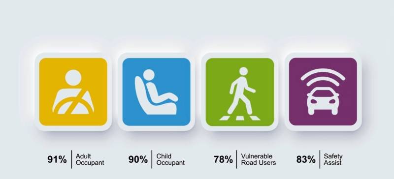 ZEEKR 7X ยานยนต์ SUV ขนาดกลางแบบขับเคลื่อนด้วยพลังงานไฟฟ้าได้รับคะแนน 91% สำหรับการปกป้องผู้โดยสารที่เป็นผู้ใหญ่ และ 90% สำหรับการปกป้องผู้โดยสารเด็ก แสดงถึงความมุ่งมั่นใส่ใจขั้นสูงสุดที่มอบความปลอดภัยให้ทุกคนในครอบครัว ด้านระบบช่วยเหลือผู้ขับขี่อัจฉริยะแบบครบวงจร ได้รับคะแนน 83% สำหรับการทดสอบด้าน Safety Assist