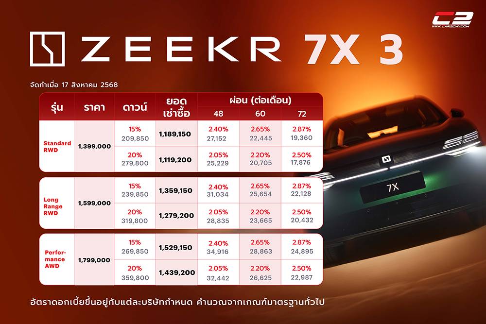 ตารางผ่อน ดาวน์ Zeekr 7X จัดทำเมื่อ 17 สิงหาคม 2568