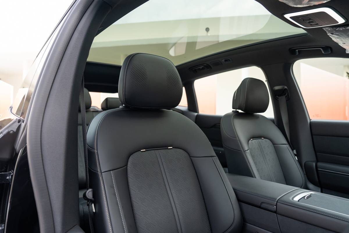 โทนภายในเป็นสีดำเทา พร้อมวัสดุหุ้มเบาะแบบหนังแท้กับหนังสังเคราะห์ PU NAPPA & PU Charcoal Sloop ปรับไฟฟ้า เบาะหลังที่ปรับเอนด้วยระบบไฟฟ้าช่วยให้ผู้โดยสารสามารถปรับองศาการนั่งให้เหมาะกับกิจกรรมต่างๆ ทำให้ห้องโดยสารหลังเปลี่ยนเป็นห้องนั่งเล่นส่วนตัวที่สมบูรณ์แบบซึ่งสะท้อนให้เห็นถึงความใส่ใจในรายละเอียด