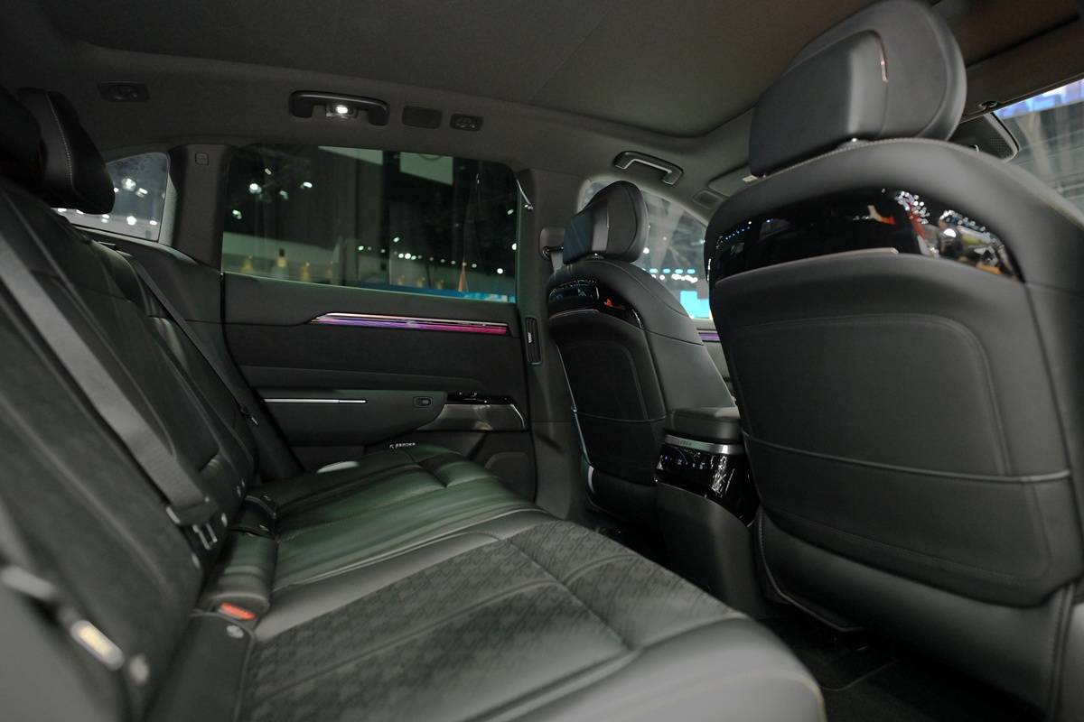 ติดตั้งลำโพงคุณภาพ Dolby Atmos 21 ตัว ประมวลผลโดยชิป Snapdragon 8295 ของ Qualcomm รองรับเชื่อมต่อ 5G ประมวลผลเร็ว โทนภายในเป็นสีดำเทา พร้อมวัสดุหุ้มเบาะแบบผ้ากับหนังสังเคราะห์ PU Textile & PU Bermuda Sloop ในรุ่น RWD และหนังแท้กับหนังสังเคราะห์ PU NAPPA & PU Charcoal Sloop ในรุ่น AWD