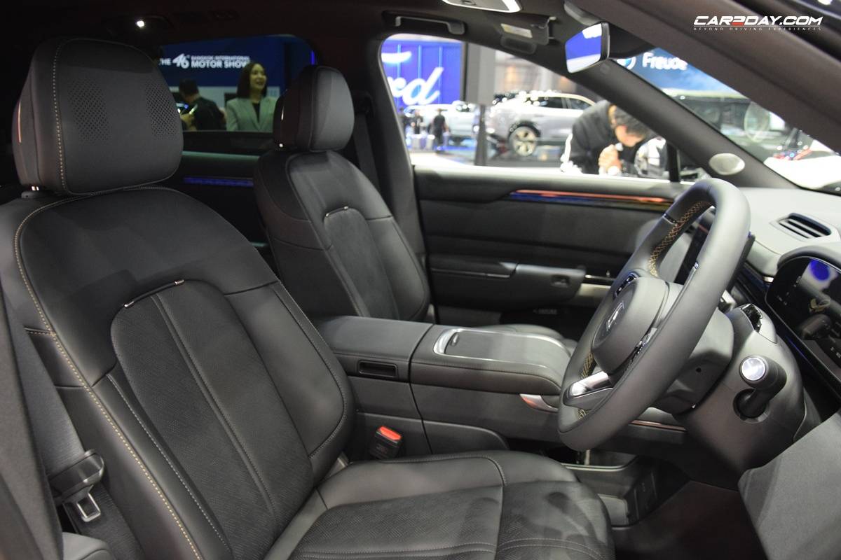 ติดตั้งลำโพงคุณภาพ Dolby Atmos 21 ตัว ประมวลผลโดยชิป Snapdragon 8295 ของ Qualcomm รองรับเชื่อมต่อ 5G ประมวลผลเร็ว โทนภายในเป็นสีดำเทา พร้อมวัสดุหุ้มเบาะแบบผ้ากับหนังสังเคราะห์ PU Textile & PU Bermuda Sloop ในรุ่น RWD และหนังแท้กับหนังสังเคราะห์ PU NAPPA & PU Charcoal Sloop ในรุ่น AWD