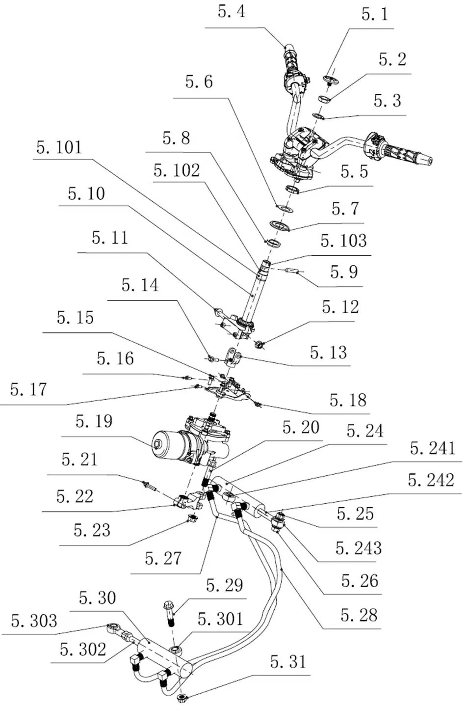 ยางหน้าขนาดใหญ่ย่อมทำให้การควบคุมหนักขึ้น Zongshen จึงเลือกใช้ ระบบพวงมาลัยพาวเวอร์แบบไฮดรอลิก โดยตัดกลไกก้านบังคับเลี้ยวแบบดั้งเดิมออกทั้งหมด แล้วใช้ลูกสูบไฮดรอลิกส่งแรงจากแฮนด์ไปยังดุมล้อหน้าโดยตรง